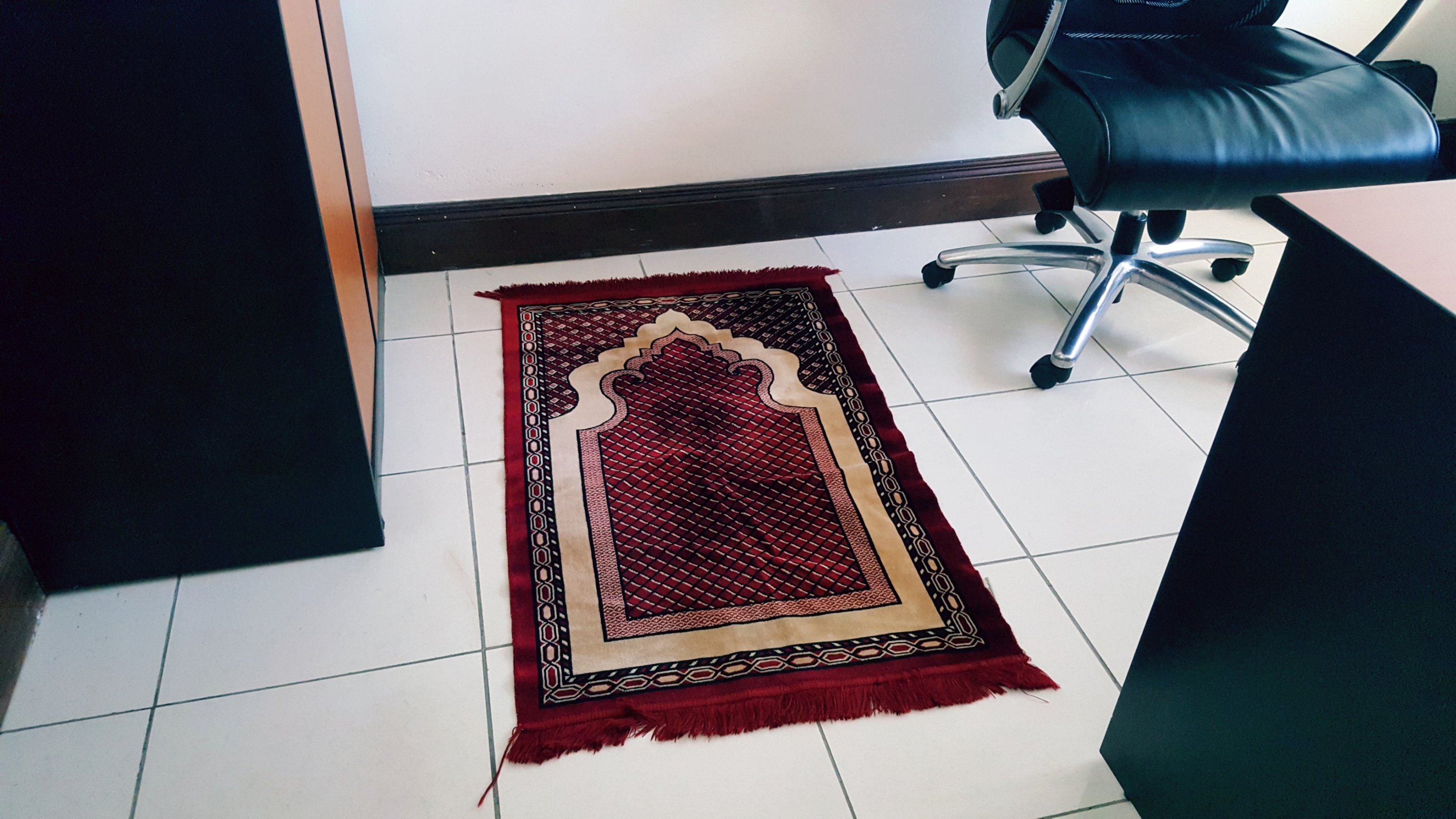 This was my prayer corner today with a small mat enough for just one , a Friday a big day for Muslims many of us were left to say prayers on our own.