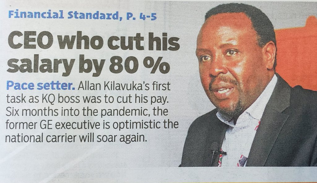 Since then we have maintained close contact and today The Standard focused on his sacrifice to turn things around at our troubled national carrier Kenya Airways.