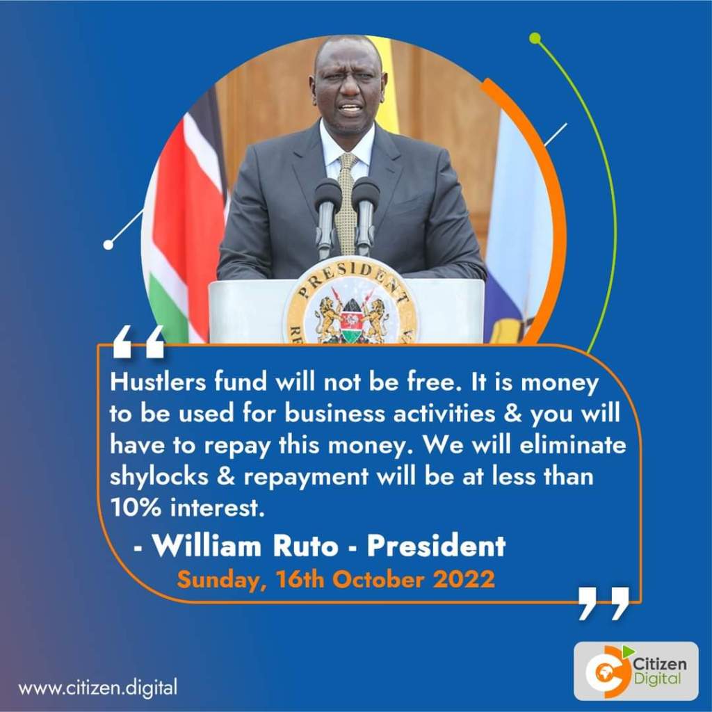 The hustler fund meant for you is ticking all the boxes and President is very clear that by December this year the hustler fund will be up and running BUT it will not be free money. I like candor and straight talk. There is nowhere in the world where you just acess free money . The sad reality is that free things are never valued or appreciated.